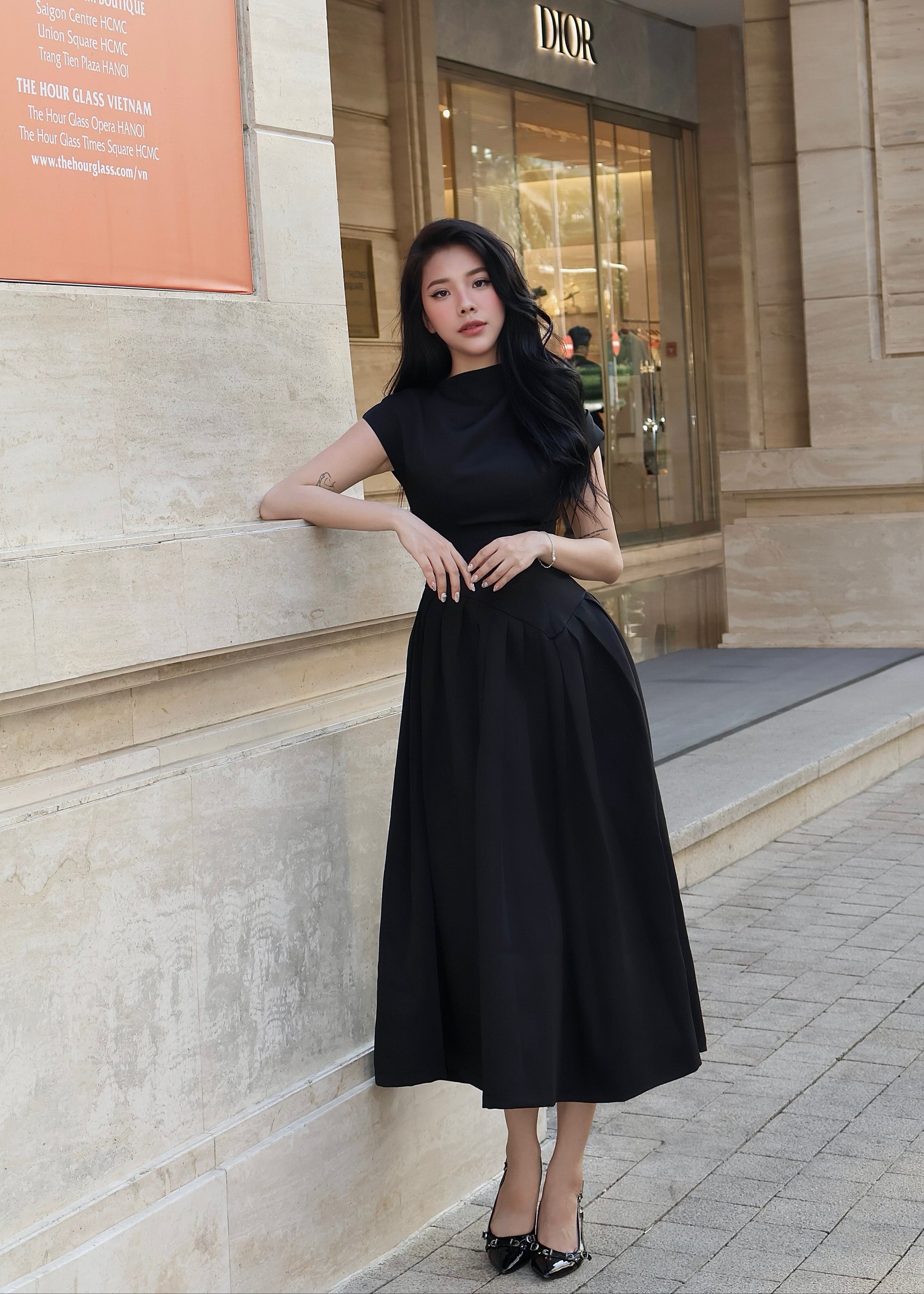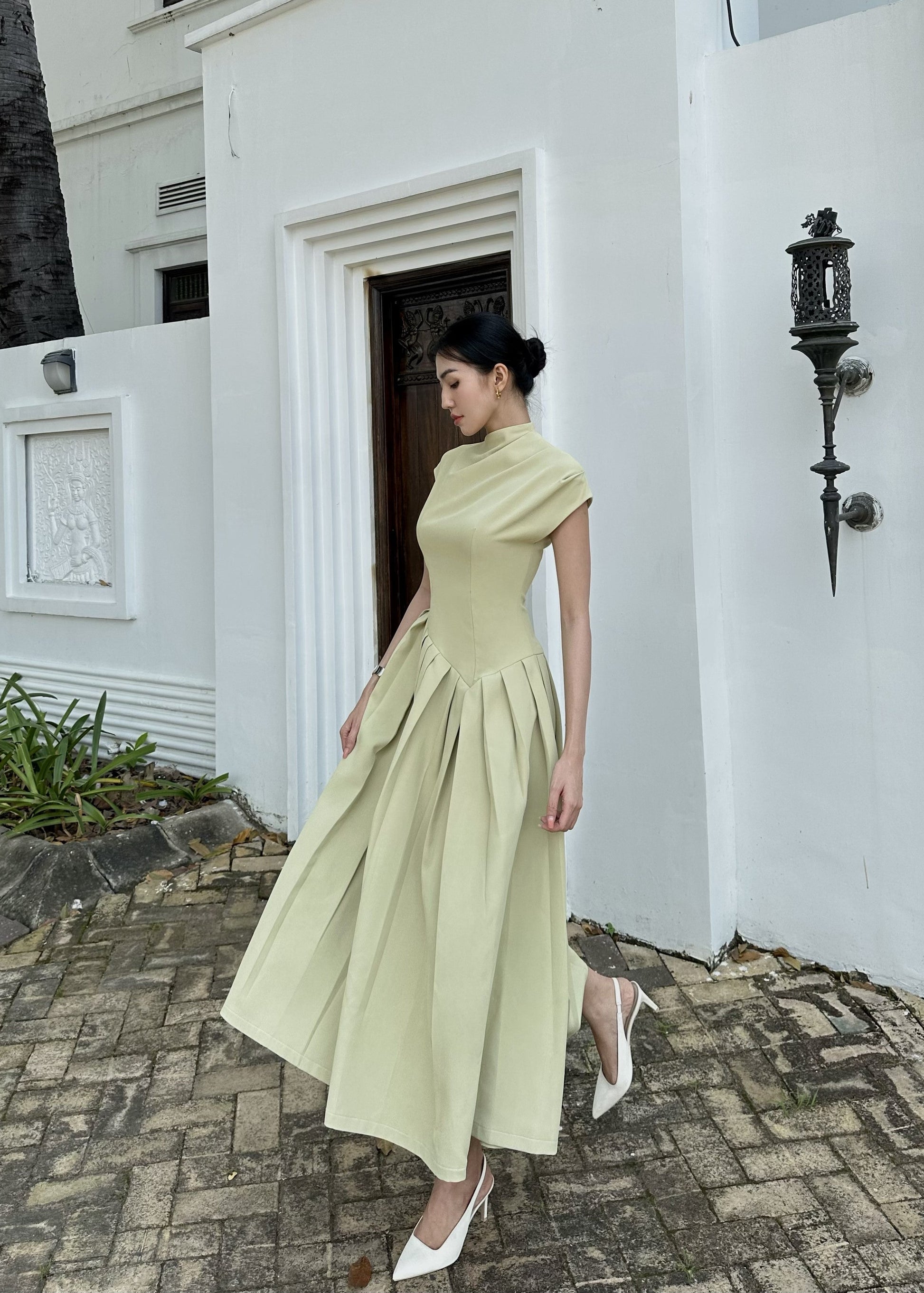 The Oliver Pleated Midi Dress is a serene interpretation of modern luxury, the sculpted bodice is gently contoured to the form, flowing into a beautifully pleated midi skirt that moves with effortless grace. Each pleat falls like a natural rhythm, creating depth and fluidity while maintaining a sense of structure and poise. The clean neckline and subtle cap sleeves lend a timeless elegance, allowing the craftsmanship and silhouette to speak for themselves.