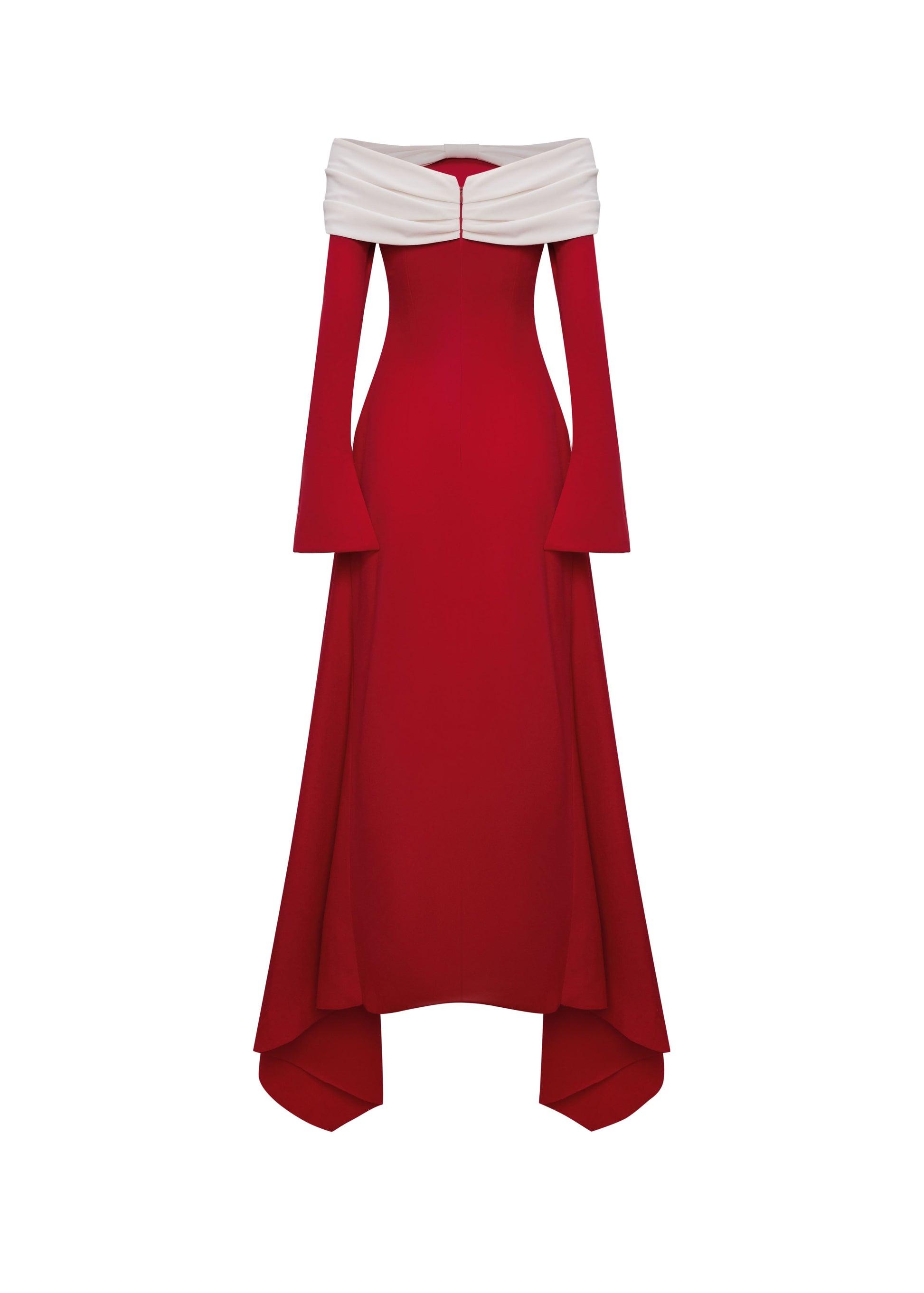 The Pearla Bow Off-Shoulder Midi Dress is a striking expression of refined elegance, inspired by the quiet drama of nature at dusk. Bathed in a rich red hue, the silhouette flows like a crimson horizon at sunset-bold yet serene, powerful yet graceful.