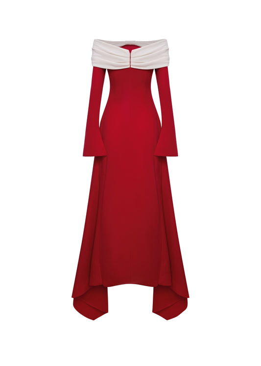 Pearla Bow Off-shoulder Midi Dress